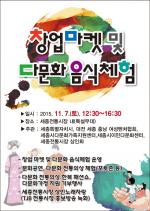 세종특별자치시(시장 이춘희)가 다문화가정여성 창업 지원 및 전통시장 활성화를 위해 7일 세종전통시장에서 ‘창업 마켓 및 다문화 음식체험 행사’를 연다.이번 행사는 세종시 다문화가정여성들의 창업을 돕고, 세계의 다양한 음식 문화를 체험하기 위해 마련했다.대전․세종․충남 여성벤처협회, 세종시 다문화가족지원센터, 세종시 이민다문화센터, 세종