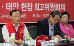 새누리당 김무성 대표와 지도부가 서산 현장최고위원회의가 지난 25일 오전 9시 서산시 잠홍동 소재 대산지방해양만청에서 개최됐다.이날 현장최고위원회에는 김무성 대표최고위원, 이인제 최고위원, 김을동 최고위원, 윤상현 사무총장, 지역 당협위원장과 서산‧태안 선출직 의원이 대거 참석하는 자리였다. 김 대표은 회의 직후 태안으로 이동해 태안군 안면읍 터
