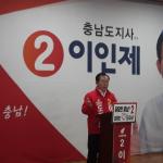 자유한국당 이인제 충남도지사 후보는 금일 2018-2019 라이온스 충남세종지구 클럽 4역 연수회 참석을 시작으로 이용우 부여군수 후보자 사무소 개소식에 참석 후 아산지역 상가를 돌아다니면서 지지를 호소했다. 이인제 후보는 충남교통연수원에서 열린 ‘2018-2019 라이온스 충남세종지구 클럽 4역 연수회’행사장을 방문해 소완섭 충남세종지구 총재와 반갑게 인