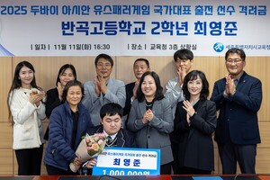 세종시교육청은 반곡고등학교 2학년 최영준 학생이 12월 7일부터 14일까지 아랍에미리트 두바이에서 열리는 ‘두바이 2025 Asian Youth Para Games(아시안 유스패러게임)’ 뇌병변장애(F33) 원반던지기 종목에 국가대표로 출전함에 따라 함께 축하하고 격려하였으며, 지원금 100만 원을 전달했다고 밝혔다.최영준 학생은 ▲제18회 전국장애학생체육대회 남자고등부 투포환 금메달, ▲제19회 전국장애학생체육대회 남자고등부 원반·투포환 2관왕, ▲제19회 전국장애인육상선수권대회 겸 제2차 국가대표 선발대회 5위 등 국내 주요 대