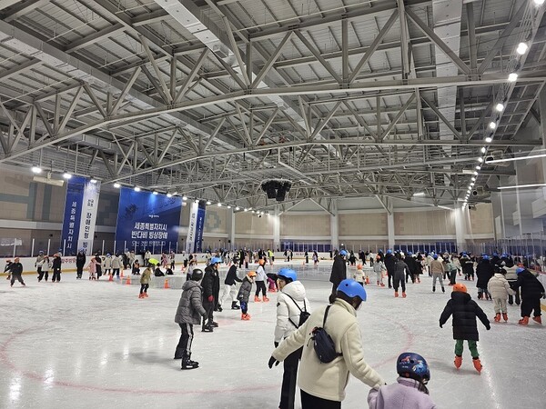 일 최대 6시간 운영 중인 자유 이용 시간에는 설 연휴 휴장에도 불구하고 지난 1월 한달간 1만 2,000여 명의 방문객이 자유롭게 빙상장을 이용하며 스케이트를 즐긴 것으로 나타났다.