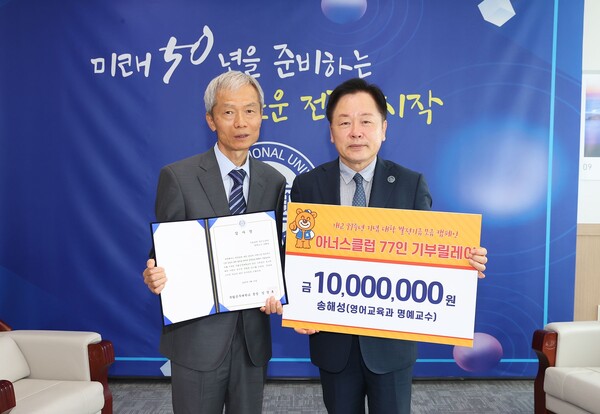 기탁식은 임경호 총장을 비롯한 주요 보직자와 사범대학 영어교육과 송해성 명예교수가 참석한 가운데 진행되었다. 국립공주대에서 오랜 기간 근무하고 올해 8월 퇴임한 송해성 명예교수는 대학 발전을 위해 1천만원을 기탁하여 개교 77주년 아너스클럽 77인 기부릴레이의 37번째 주자로 이름을 올렸다.