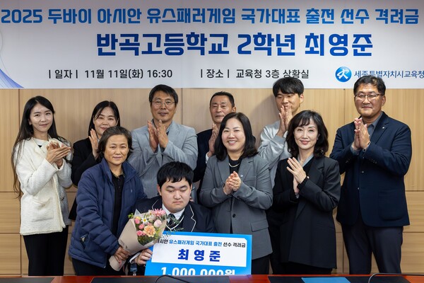 세종시교육청은 반곡고등학교 2학년 최영준 학생이 12월 7일부터 14일까지 아랍에미리트 두바이에서 열리는 ‘두바이 2025 Asian Youth Para Games(아시안 유스패러게임)’ 뇌병변장애(F33) 원반던지기 종목에 국가대표로 출전함에 따라 함께 축하하고 격려하였으며, 지원금 100만 원을 전달했다고 밝혔다.