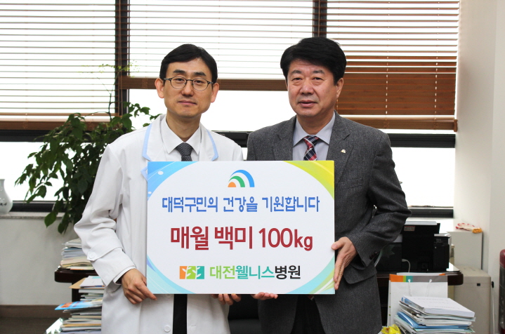 대전웰니스병원은 지역사회 일원으로서 나눔을 실천한다는 취지에서 꾸준히 이웃사랑을 전개하여 지역사회의 훈훈한 귀감이 되고 있다. 대전웰니스병원은 앞으로는 매월 백미 100kg씩을 송촌동에 기탁키로 했다.
