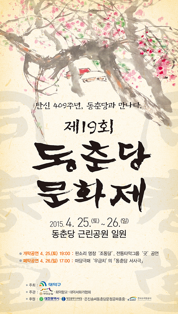 ‘탄신 409주년, 동춘당과 만나다’를 주제로 열리는 이번 행사는 ▲대덕구민 화합의 장 ▲전통문화의 장 ▲문화예술 체험의 장 등 3개 분야 20개 행사로 선비정신의 의미와 재미를 동시에 충족시켜주는 프로그램으로 구성됐다.