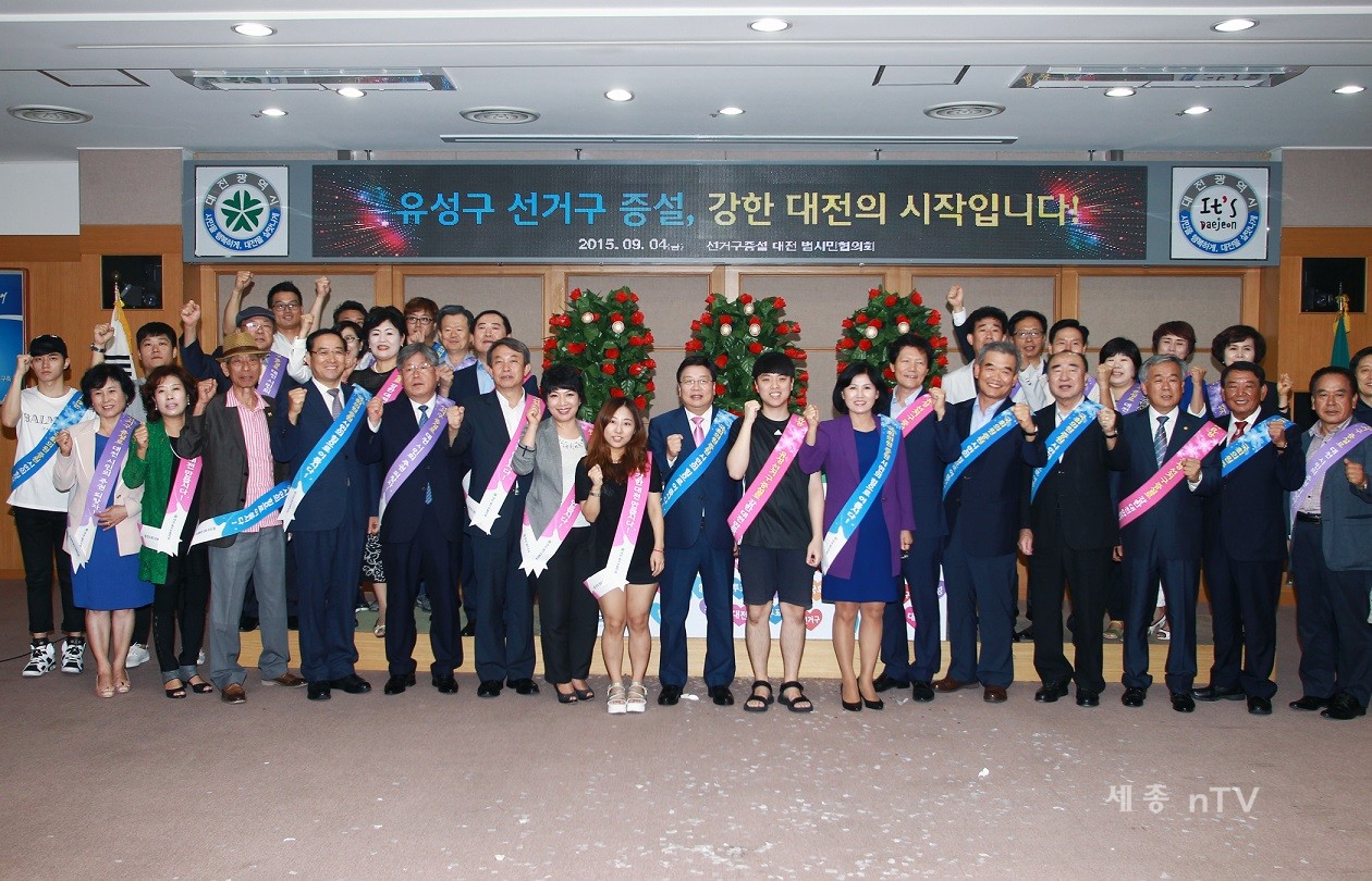 4일 오후 대전시청 대회의실에서 권선택 대전시장과 김인식 시의회의장, 정교순 선거구증설 대전 범시민협의회 상임대표를 비롯한 시민사회단체, 통장연합회, 학생 등 70여명은 시민 서명운동 발대식을 갖고 본격적으로 시민 여론 결집에 나섰다.