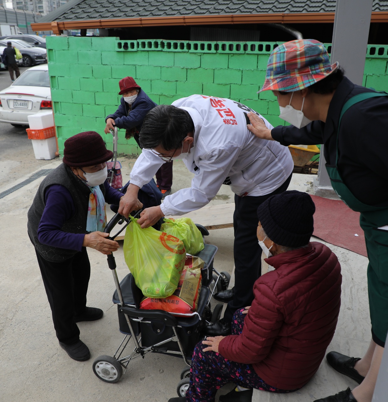 조 예비후보는 식사를 하기 위해 찾아오신 어르신들을 안내하고 식사와 간식을 챙겨드리는 활동과 마침 급식소에 도착한 쌀과 반찬거리들을 창고로 옮기는 봉사활동을 하였다.