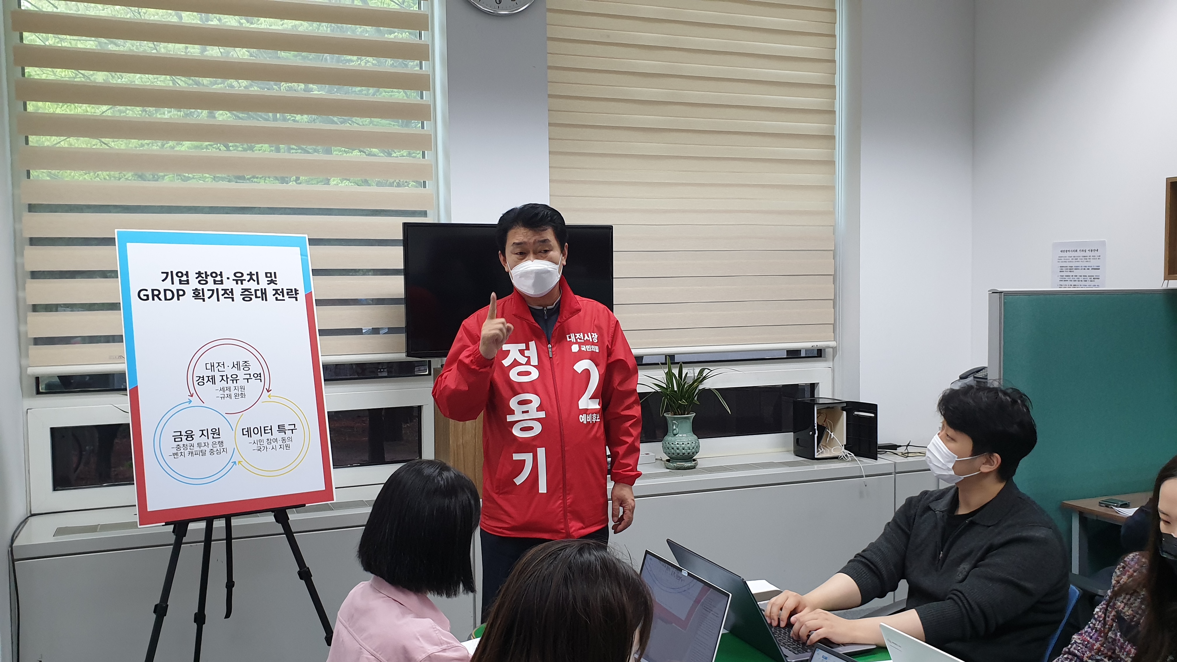 정 예비후보는 먼저 기업 창업·유치 및 GRDP 획기적 증대 전략으로 첫째 윤석열 대통령 당선인의 공약인 대전·세종 경제자유구역 지정을 통해 세제 지원 및 규제 완화를 하고 둘째 정 예비후보가 윤석열 당선인에게 건의해서 공약화한 충청권 은행을 통해 기업의 창업 및 성장에 대한 금융 지원을 이뤄내는 동시에 셋째 대전 및 인접 도시들을 데이터 특구로 지정해 기업의 데이터 활용을 국가와 시가 지원을 하도록 하겠다고 밝혔다.